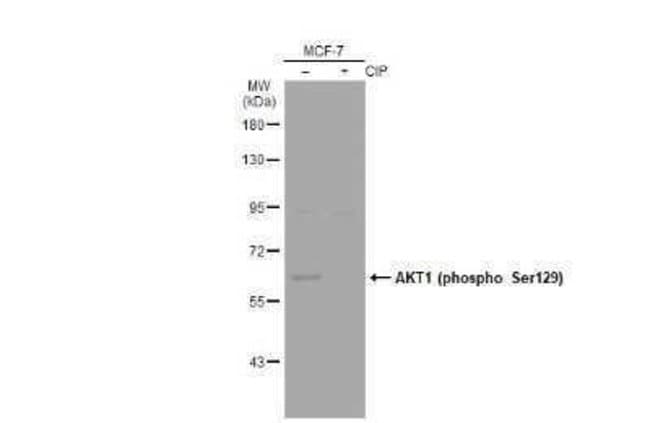 | Immunogen | Carrier-protein conjugated synthetic peptide encompassing a sequence within the center region of human AKT1 (phospho Ser129). The exact sequence is proprietary. |