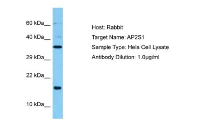 AP2S1 Polyclonal specifically detects AP2S1 in Human samples. It is validated for Western Blot.