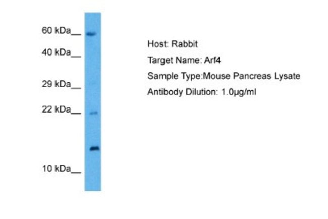 ARF4 Polyclonal specifically detects ARF4 in Mouse samples. It is validated for Western Blot.