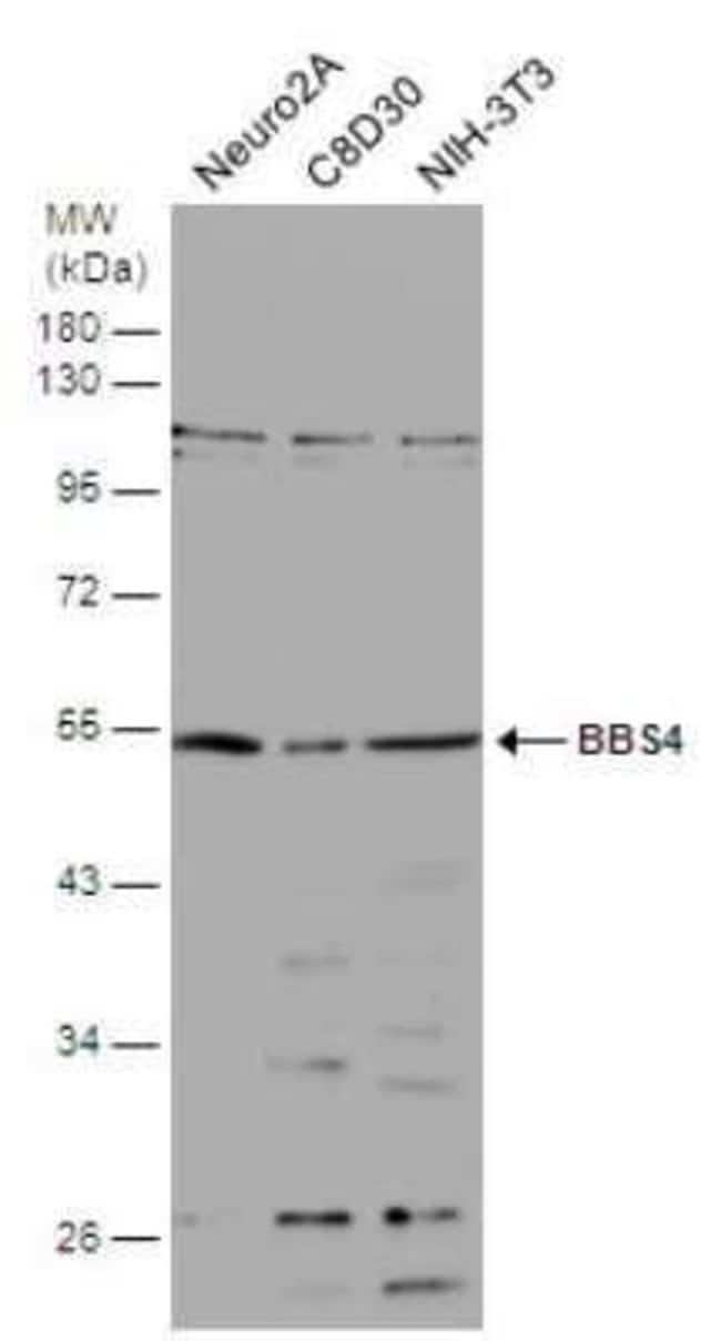 | Immunogen | Recombinant protein encompassing a sequence within the N-terminus region of human BBS4. The exact sequence is proprietary. |