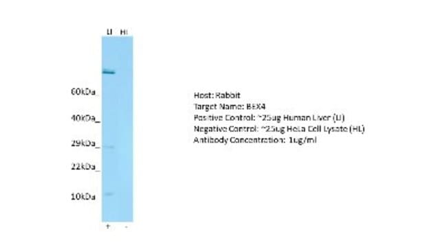 BEX4 Polyclonal specifically detects BEX4 in Human samples. It is validated for Western Blot.