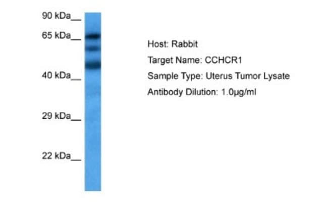 CCHCR1 Polyclonal specifically detects CCHCR1 in Human samples. It is validated for Western Blot.