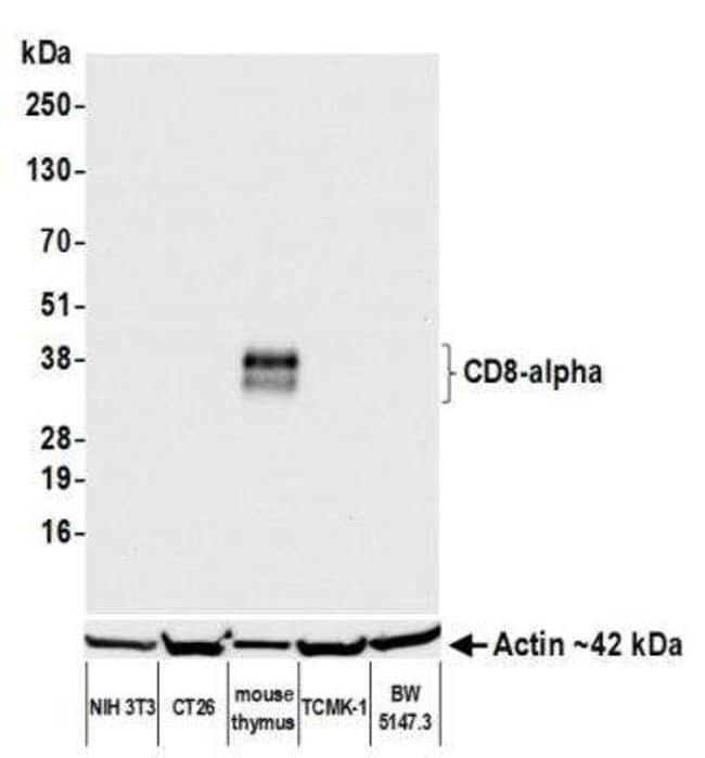 CD8 Monoclonal antibody specifically detects CD8 in Mouse samples. It is validated for Western Blot, Immunohistochemistry, Immunoprecipitation