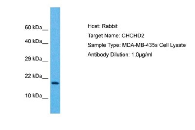 | Immunogen | The immunogen is a synthetic peptide directed towards the middle region of human CHCHD2 |