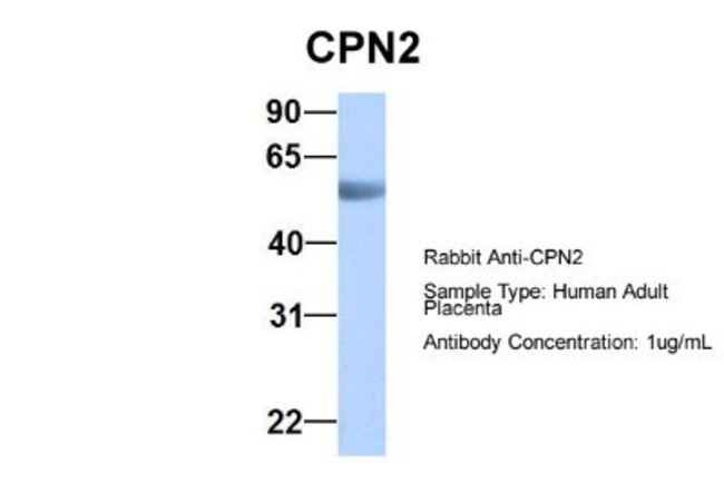 CPN2 Polyclonal specifically detects CPN2 in Human samples. It is validated for Western Blot.