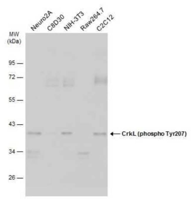 | Immunogen | Carrier-protein conjugated synthetic peptide corresponding to residues around human CrkL (phospho Tyr207). The exact sequence is proprietary. |