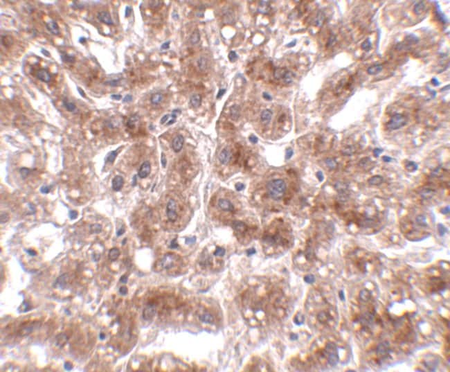 A suggested positive control is rat liver tissue lysate. PA5-20619 can be used with blocking peptide PEP-0739.
