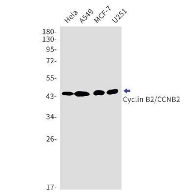 Cyclin B2 Monoclonal antibody specifically detects Cyclin B2 in Human, Mouse, Rat samples. It is validated for Western Blot, ELISA, Immunohistochemistry, Immunohistochemistry (Paraffin), Immunofluorescence