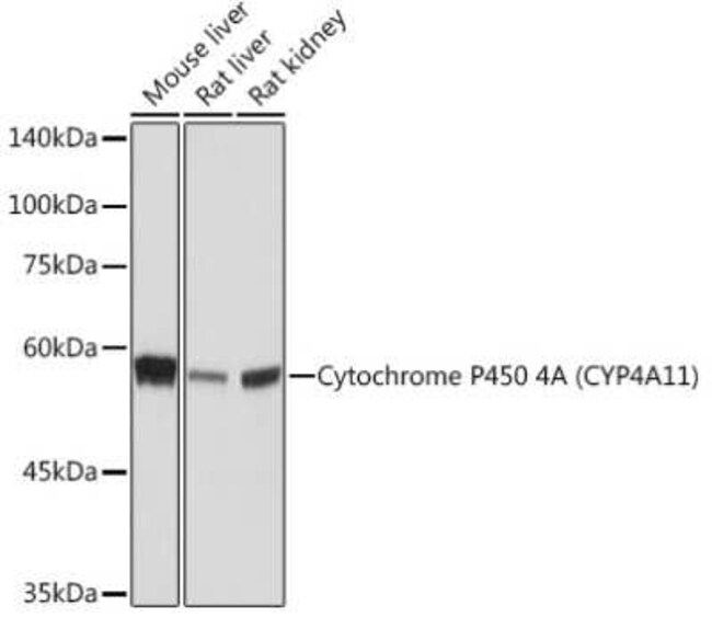 Cytochrome P450 4A Monoclonal antibody specifically detects Cytochrome P450 4A in Human, Mouse, Rat samples. It is validated for Western Blot, Immunohistochemistry, Immunohistochemistry (Paraffin)