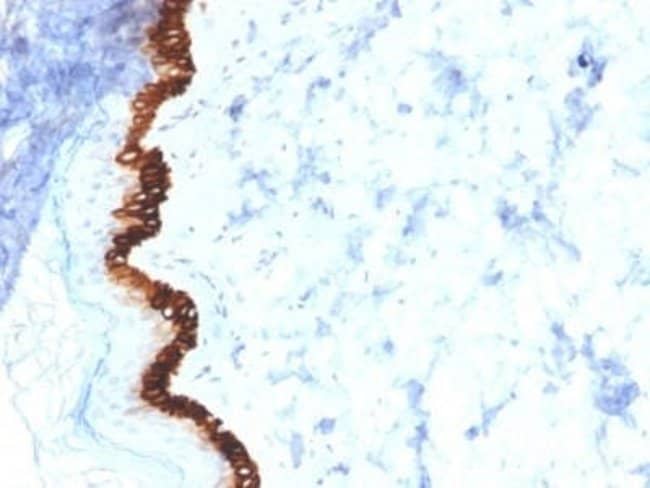 Cytokeratin 15 Monoclonal specifically detects Cytokeratin 15 in Human samples. It is validated for Flow Cytometry, Immunohistochemistry-Paraffin, Protein Array.
