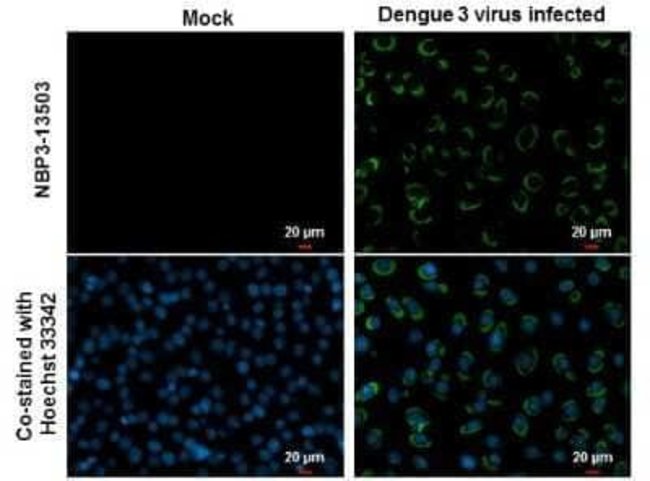 Dengue Virus NS1 protein Monoclonal antibody specifically detects Dengue Virus NS1 protein in Virus samples. It is validated for Western Blot, Immunofluorescence