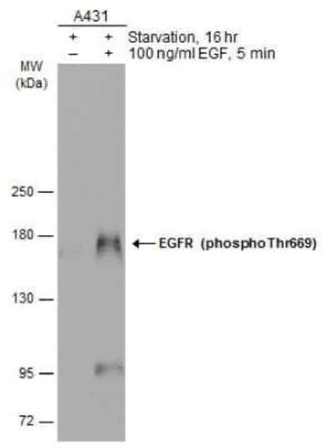 | Immunogen | Carrier-protein conjugated synthetic peptide corresponding to residues around human EGFR (phospho Thr669). The exact sequence is proprietary. |