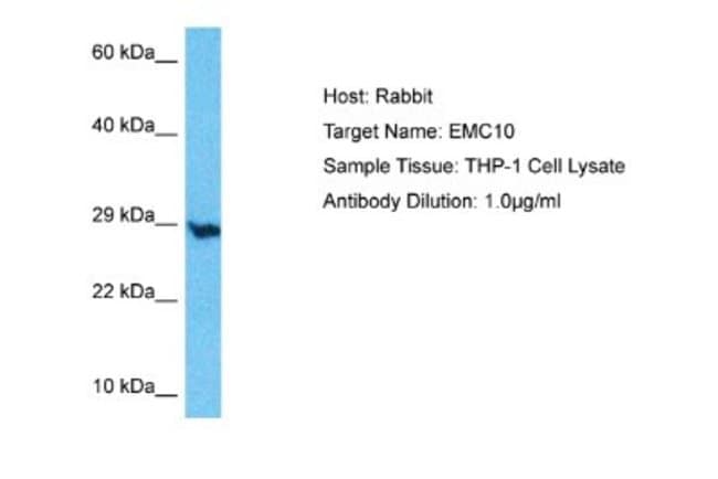 | Immunogen | The immunogen is a synthetic peptide directed towards the C-terminal region of Human ER Membrane Protein Complex Subunit 10 |