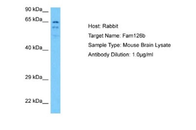 FAM126B Polyclonal specifically detects FAM126B in Mouse samples. It is validated for Western Blot.