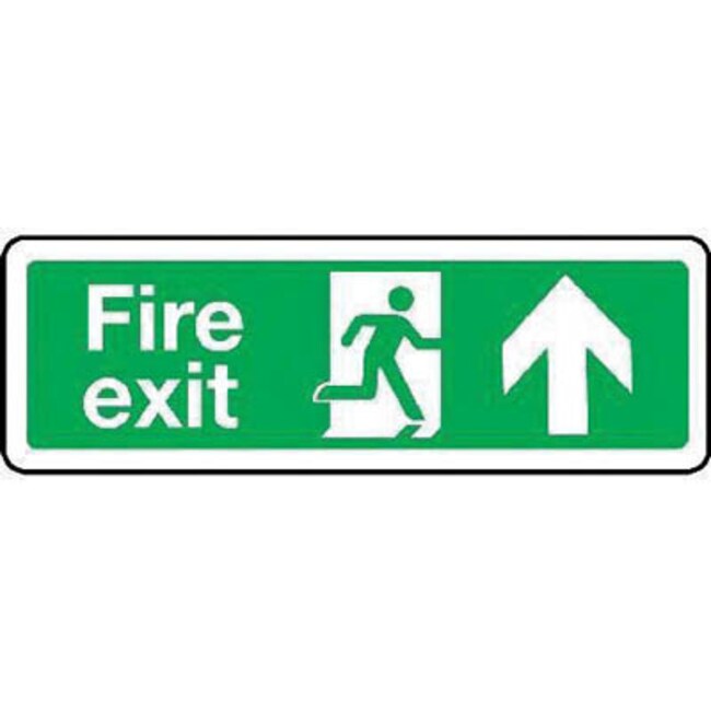 Fire exit up sign. 600 x 200mm. Rigid plastic