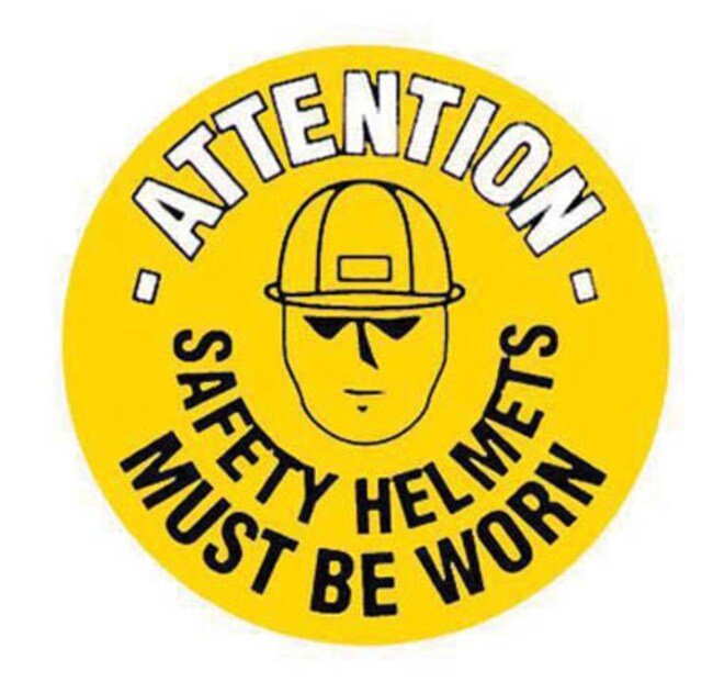 Floor graphic marker - attention safety helmets...
