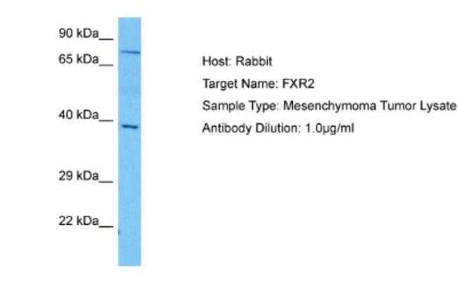 FXR2 Polyclonal specifically detects FXR2 in Human samples. It is validated for Western Blot.