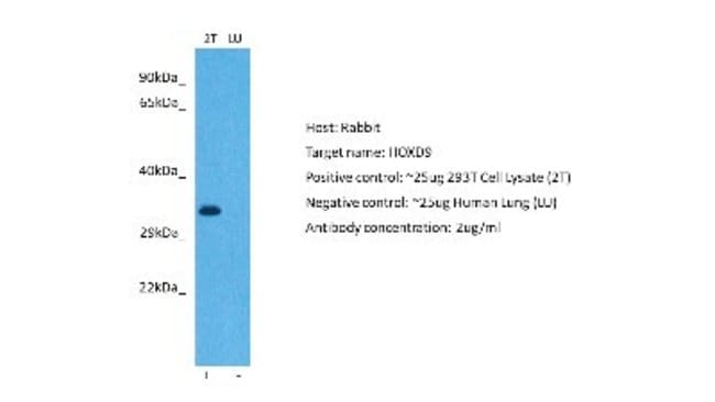 HOXD9 Polyclonal specifically detects HOXD9 in Human samples. It is validated for Western Blot.