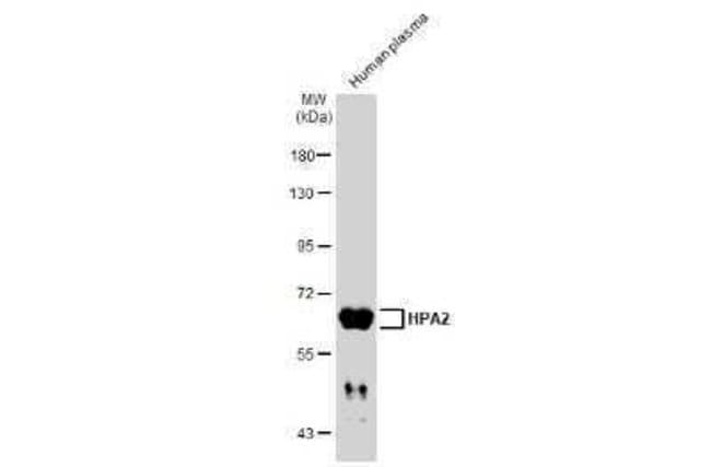 | Immunogen | Recombinant protein encompassing a sequence within the center region of human HPSE2. The exact sequence is proprietary. |