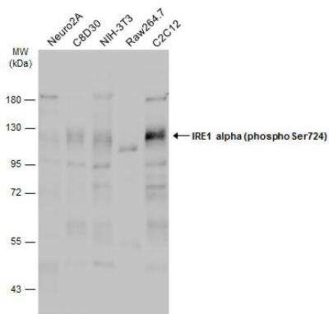 IRE1 alpha Polyclonal antibody specifically detects IRE1 alpha in Human, Mouse, Rat samples. It is validated for Western Blot