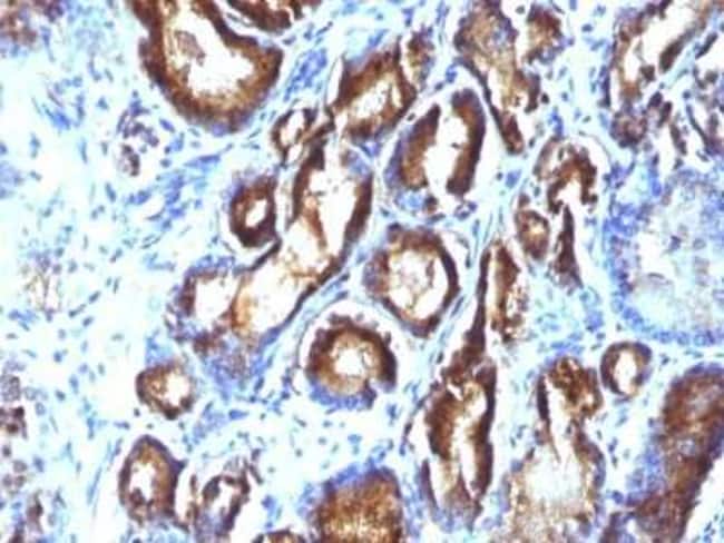 Kallikrein 3/PSA Monoclonal antibody specifically detects Kallikrein 3/PSA in Human samples. It is validated for Immunohistochemistry, Immunohistochemistry (Paraffin)
