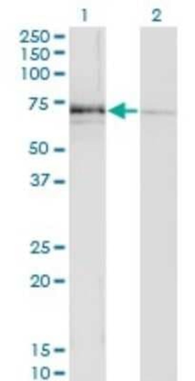 N-Acetylglucosaminyltransferase III/MGAT3 Monoclonal antibody specifically detects N-Acetylglucosaminyltransferase III/MGAT3 in Human samples. It is validated for Western Blot, ELISA