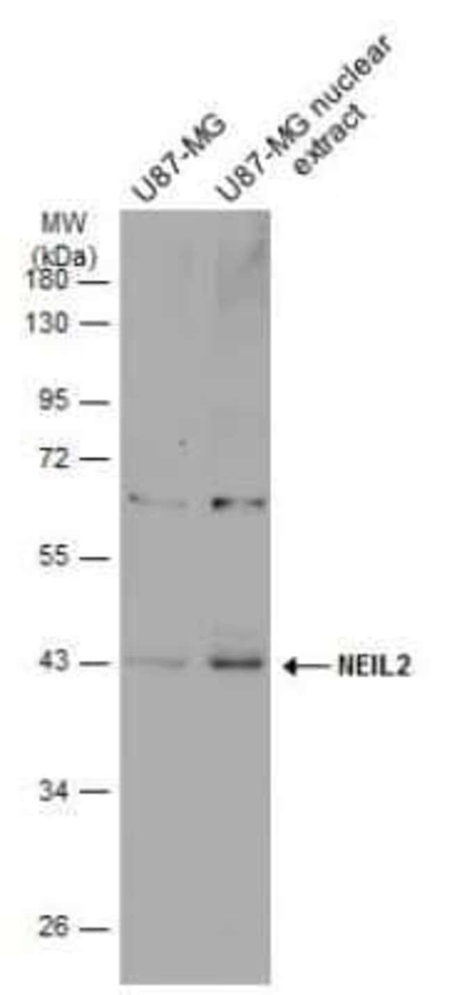 | Immunogen | Recombinant protein encompassing a sequence within the center region of human NEIL2. The exact sequence is proprietary. |