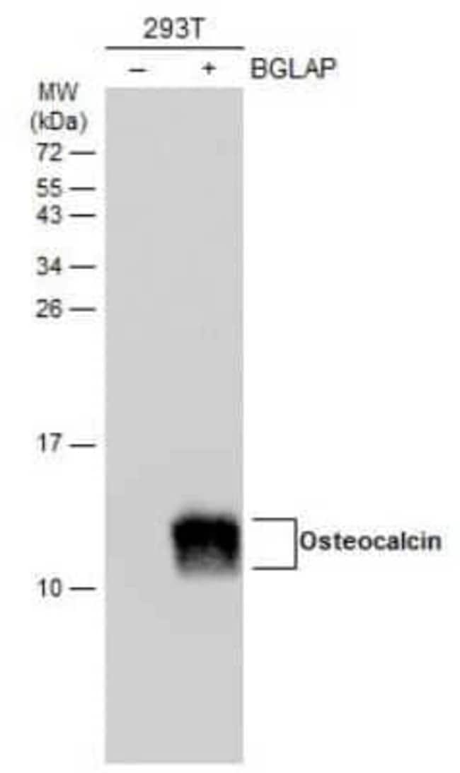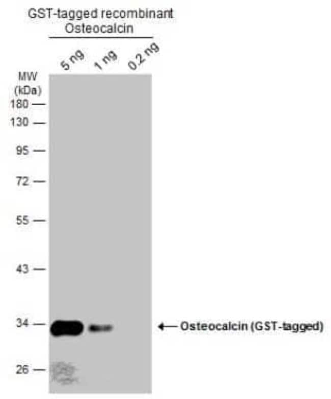 | Immunogen | Recombinant protein encompassing a sequence within the Center region of human Osteocalcin. The exact sequence is proprietary. |
