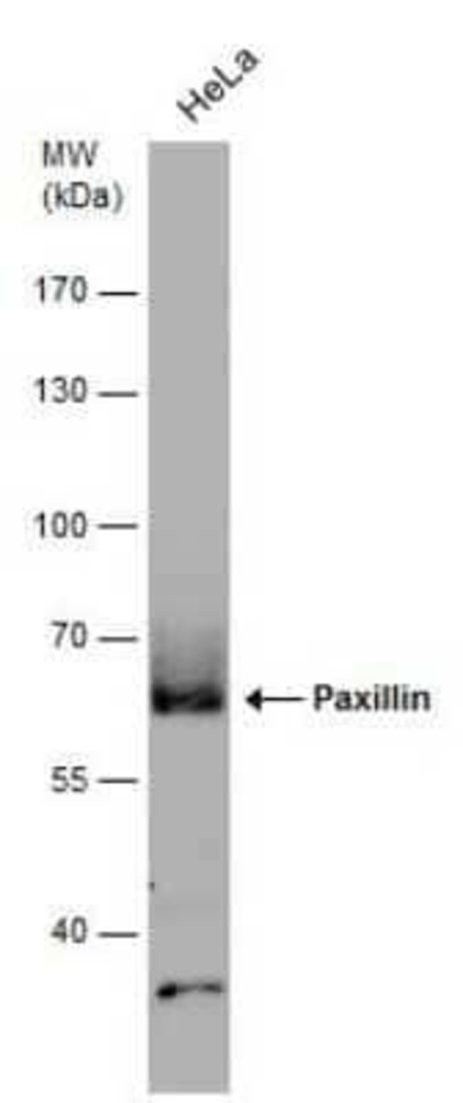 | Immunogen | Recombinant protein encompassing a sequence within the center region of human Paxillin. The exact sequence is proprietary. |