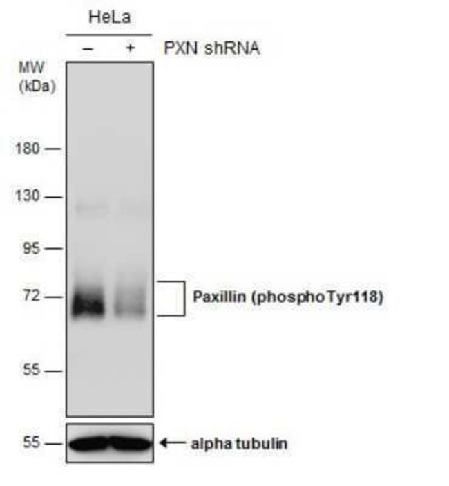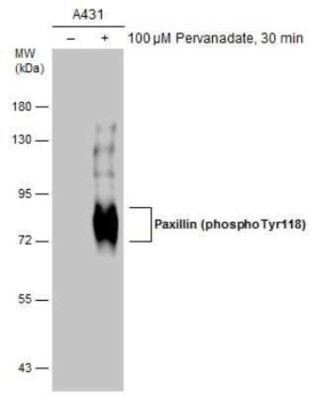 | Immunogen | Carrier-protein conjugated synthetic peptide corresponding to residues around human Paxillin (phospho Tyr118). The exact sequence is proprietary. |