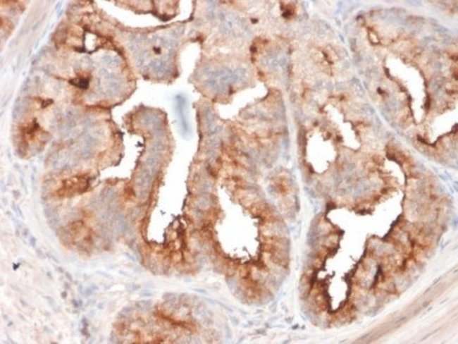 PSMA/FOLH1/NAALADase I Monoclonal specifically detects PSMA/FOLH1/NAALADase I in Human samples. It is validated for Western Blot, Immunohistochemistry-Paraffin, Protein Array.