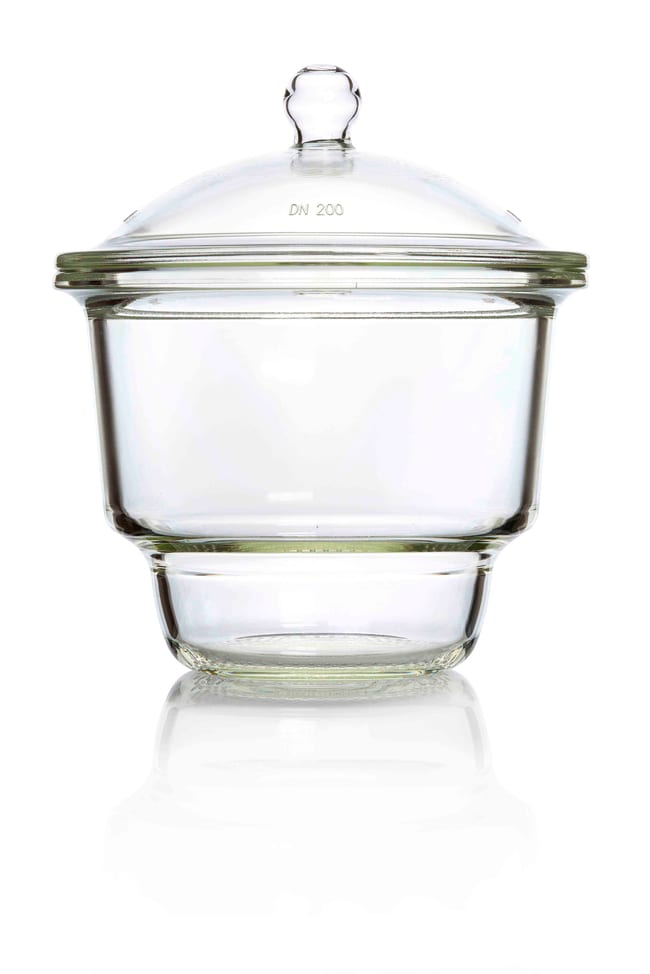 - Robust desiccator base and cover in borosilicate glass
