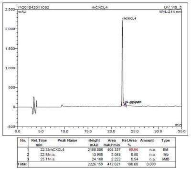 | Endotoxin Concentration | Less than 1 EU/μg of CXCL4/PF4 as determined by LAL method. |