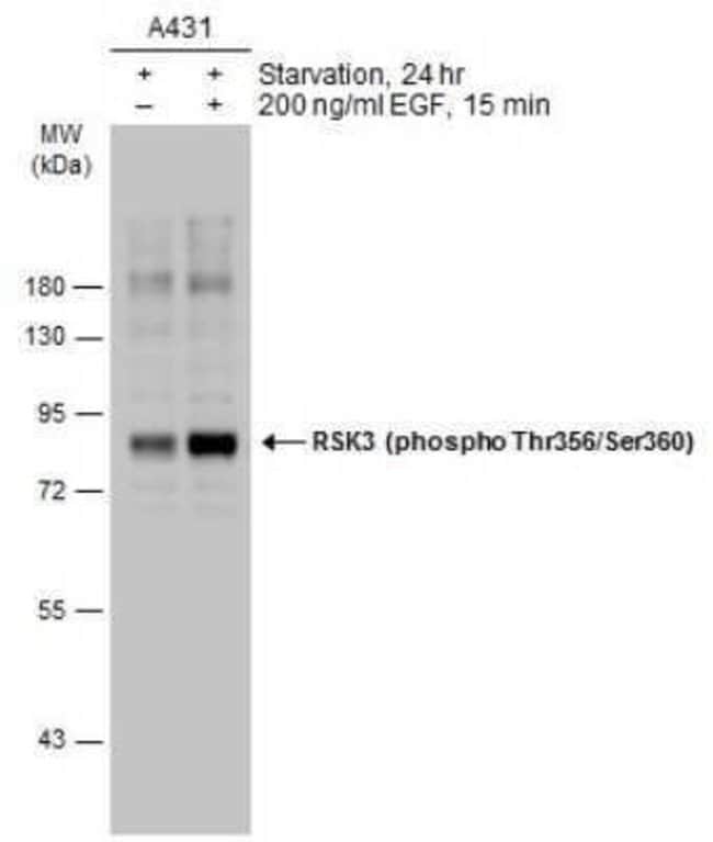 | Immunogen | Carrier-protein conjugated synthetic peptide corresponding to residues around human RSK3 (phospho Thr356/Ser360). The exact sequence is proprietary. |