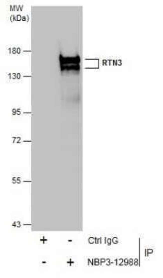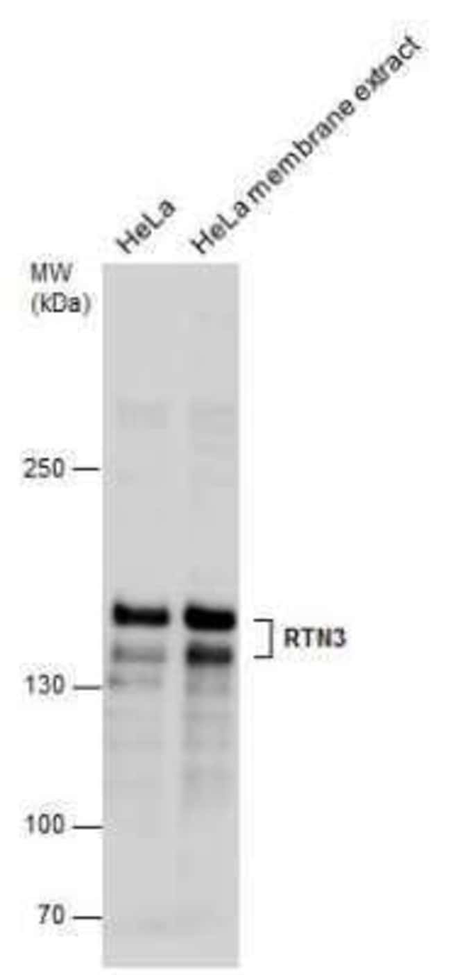 | Immunogen | Recombinant protein encompassing a sequence within the center region of human RTN3. The exact sequence is proprietary. |