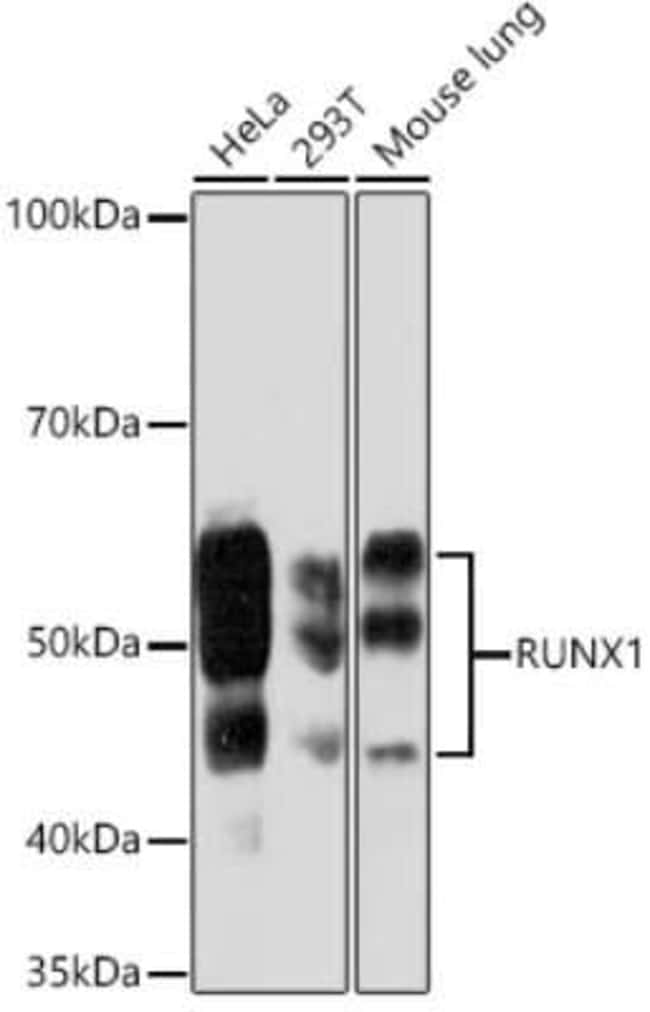 RUNX1/2/3 Monoclonal antibody specifically detects RUNX1/2/3 in Human, Mouse samples. It is validated for Western Blot