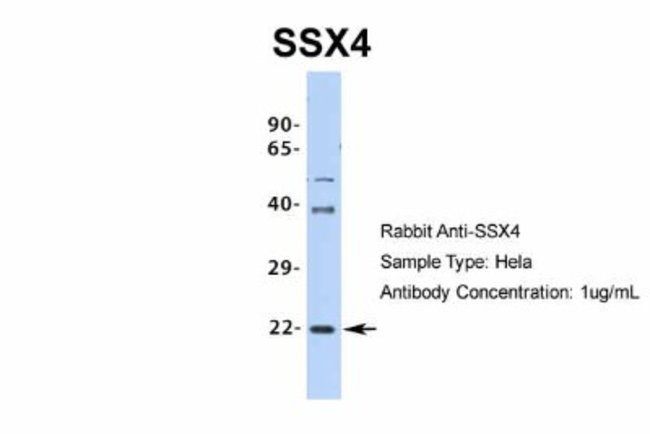| Immunogen | The immunogen is a synthetic peptide directed towards the middle region of human SSX4 |