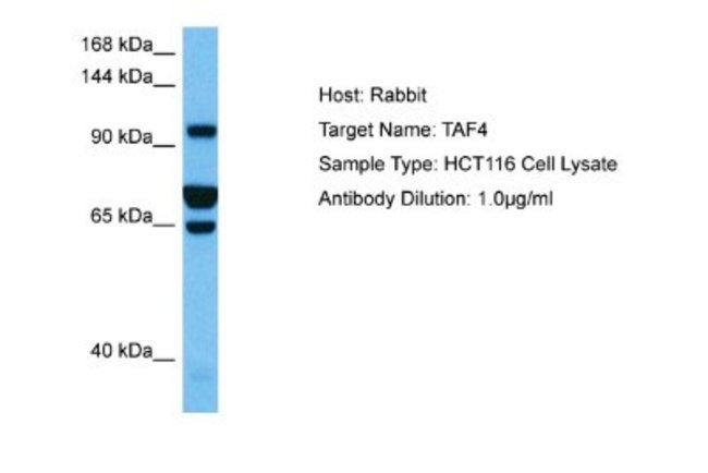 Taf4 Polyclonal specifically detects Taf4 in Human samples. It is validated for Western Blot.