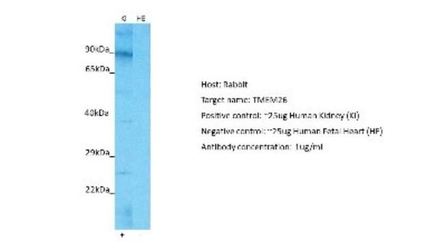 | Immunogen | The immunogen is a synthetic peptide directed towards the C-terminal region of Human TMEM26 |