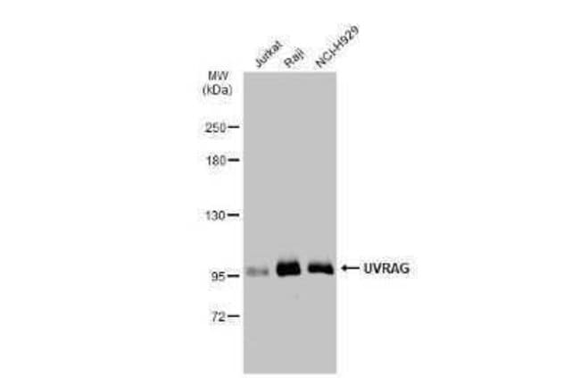 UVRAG Polyclonal antibody specifically detects UVRAG in Human samples. It is validated for Western Blot