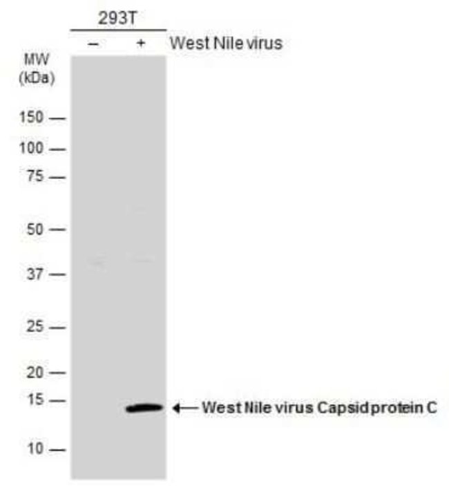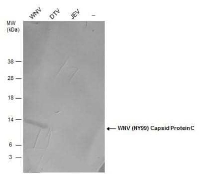 West Nile Virus C Protein Polyclonal antibody specifically detects West Nile Virus C Protein in Virus samples. It is validated for Western Blot