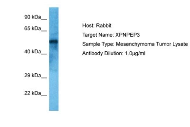 | Immunogen | The immunogen is a synthetic peptide directed towards the middle region of human XPNPEP3 |