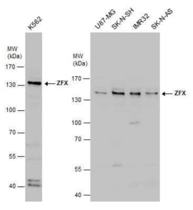 | Immunogen | Recombinant protein encompassing a sequence within the N-terminus of human ZFX. The exact sequence is proprietary. |