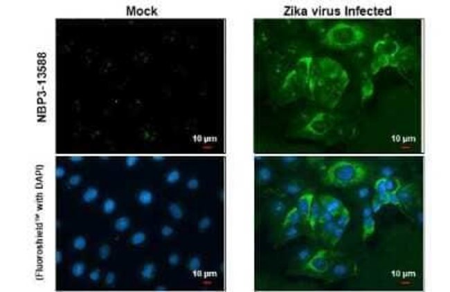 Zika Virus (H/PF/2013) Envelope Monoclonal antibody specifically detects Zika Virus (H/PF/2013) Envelope in Virus samples. It is validated for Western Blot, ELISA, Immunofluorescence, ELISA