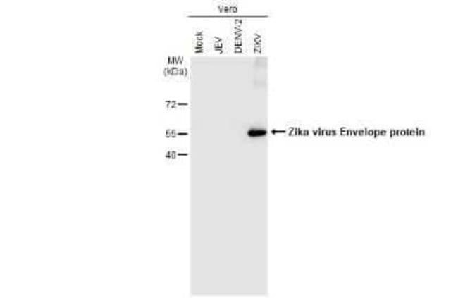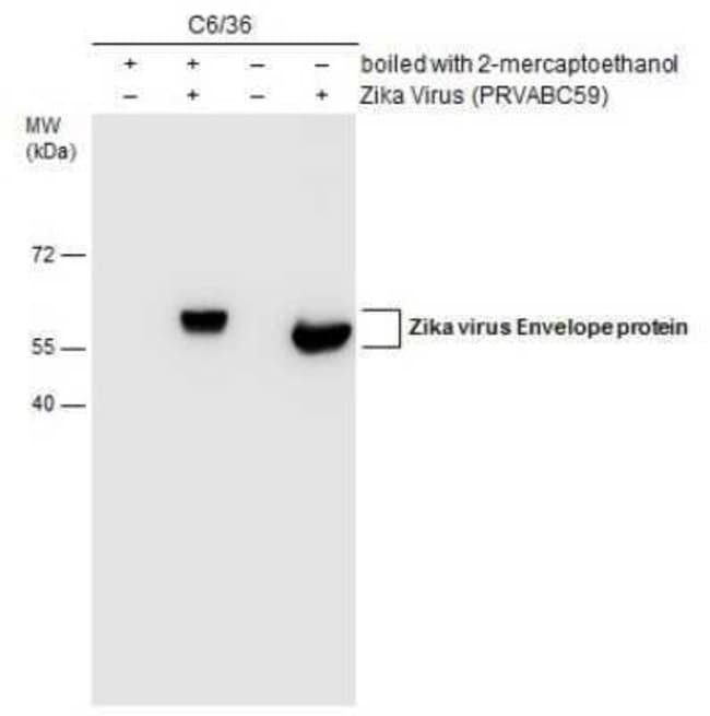 | Immunogen | Carrier-protein conjugated synthetic peptide encompassing a sequence within the center region of Zika Virus (H/PF/2013) Envelope (Zika virus (strain H/PF/2013)). The exact sequence is proprietary. |